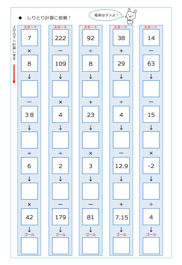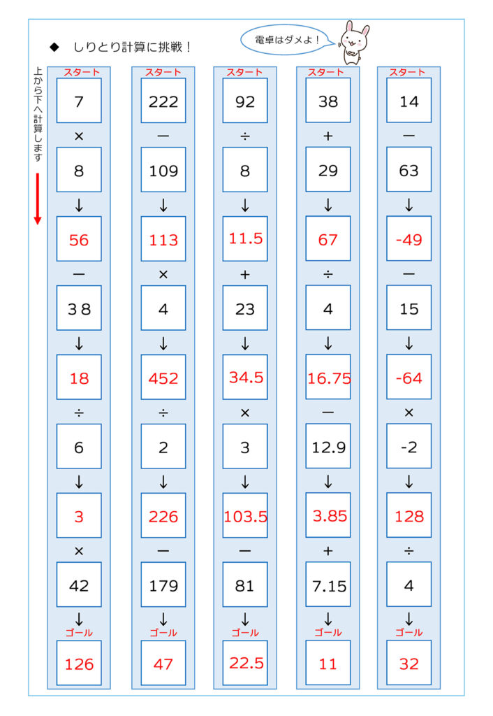 【脳若問題】第3弾「しりとり計算」の答えです。 画像を拡大してご覧ください。 -