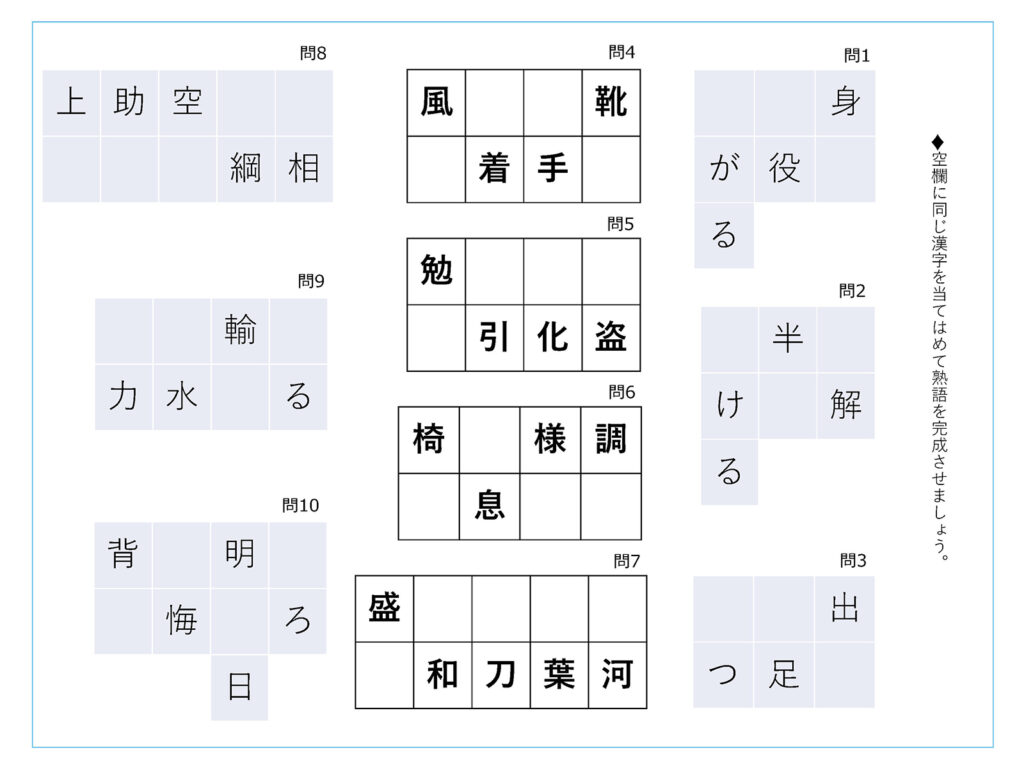 【脳若問題】第4弾は「同じ漢字の熟語」です。各問題それぞれ、空欄には同じ漢字... -